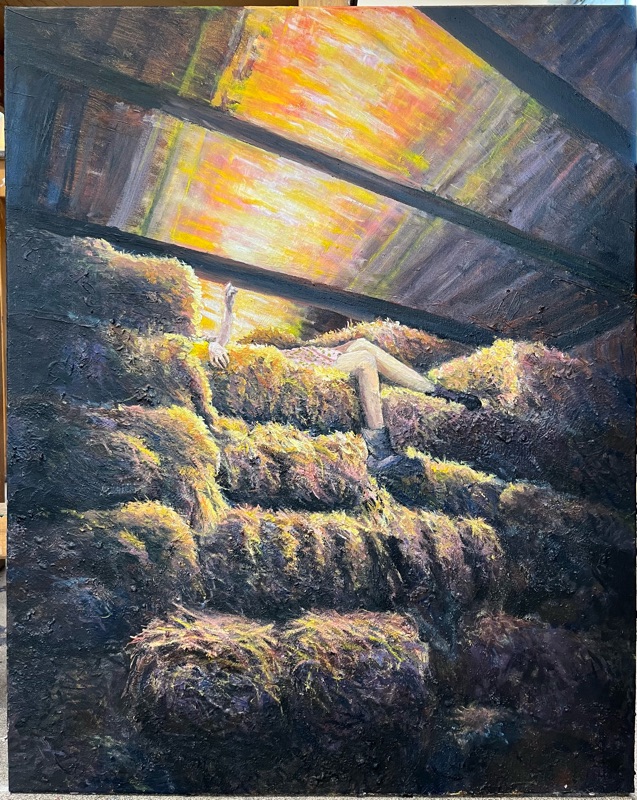 ‘Amongst the Haystacks’ - Matilda O’Shea Get link Facebook X Pinterest Email Other Apps September 14, 2025 •Acrylic & oil paint on an A1 wooden board Get link Facebook X Pinterest Email Other Apps Comments